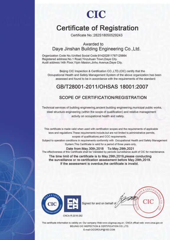 大冶金山建筑工程有限公司是一家專業從事建筑安裝總承包、園林古建筑、園林綠化景觀工程、文物修繕、市政道路工程、鋼結構工程等綜合型施工企業,公司具有資本投資運營合作實力。